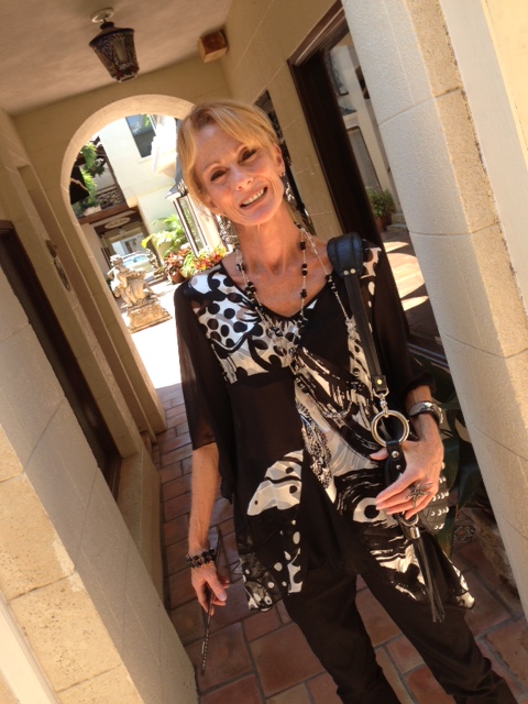 The black and white look, with a flowing necklace of crystal and onyx draped over a silk chiffon and silk charmeuse patchwork tunic. Her earrings are rhinestone and pewter, all the way from Paris! Bonnie is currently in Nantucket, so if you’re on the island, email bonnie@bonnieroseman.com for your one on one consultation today.