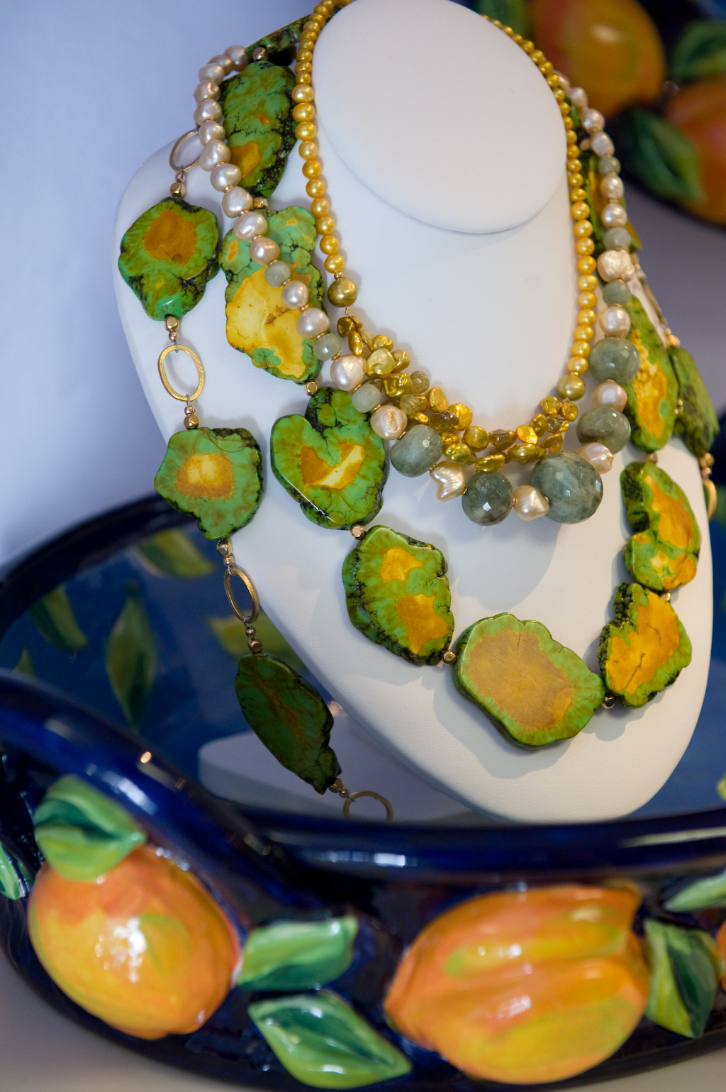 A lovely assortment of pearls; yellow & green adventurine; cobalt glass bowl with bas relief. Timeless treasures at Bonnie Roseman’s BLT Boutique are available now, just in time for the holiday season!