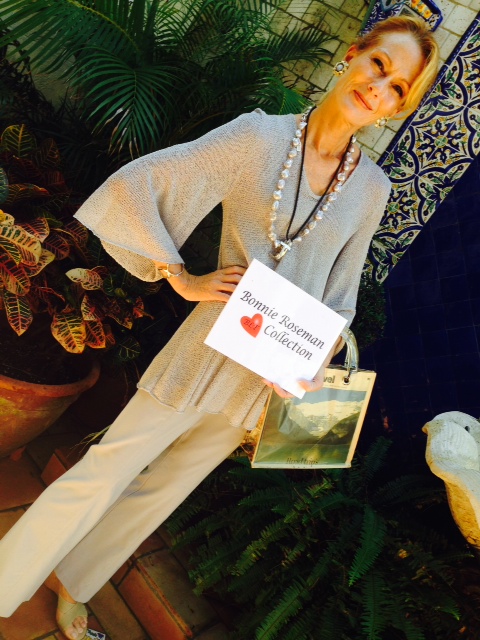 At Bonnie Roseman’s BLT Boutique, there are some hot new fashion additions for 2014! This Italian knit sweater is hand-loomed, and the slimming pants are made of a non-wrinkling stretch fabric that comes in 12 colors. The perfect outfit to toss in a Pan Am bag and make your getaway to Rome for the weekend! The one of a kind necklace featured is made from baroque pearls.