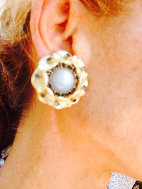 To pair with the beautiful pearl necklace made from baroque pearls, these vintage earrings from Paris make a perfect match. The gorgeous gold and natural hues of nature make this accessory one you can pair with many wardrobe pieces.